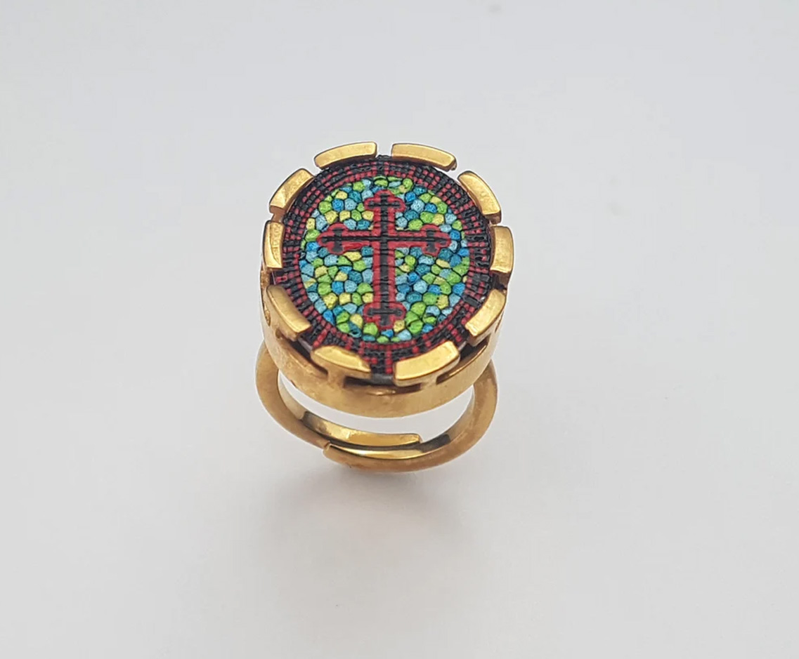Make a bold and symbolic statement with the Cross Silver Mosaic Ring. This intricately designed ring beautifully marries classic elegance with a touch of artistic flair.