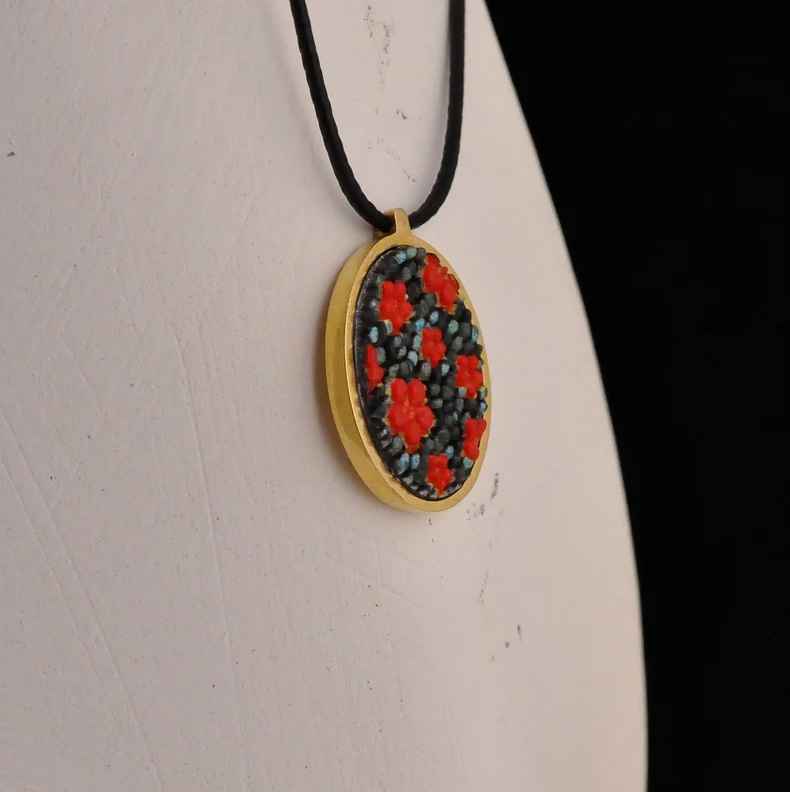 Inspired by nature, the Mosaic Medium Oval Flower Garden Silver Necklace is a unique jewelry piece crafted by the hands of skilled artisans. This necklace is a wearable work of art, featuring a breathtaking flower garden motif intricately designed within a silver oval frame.