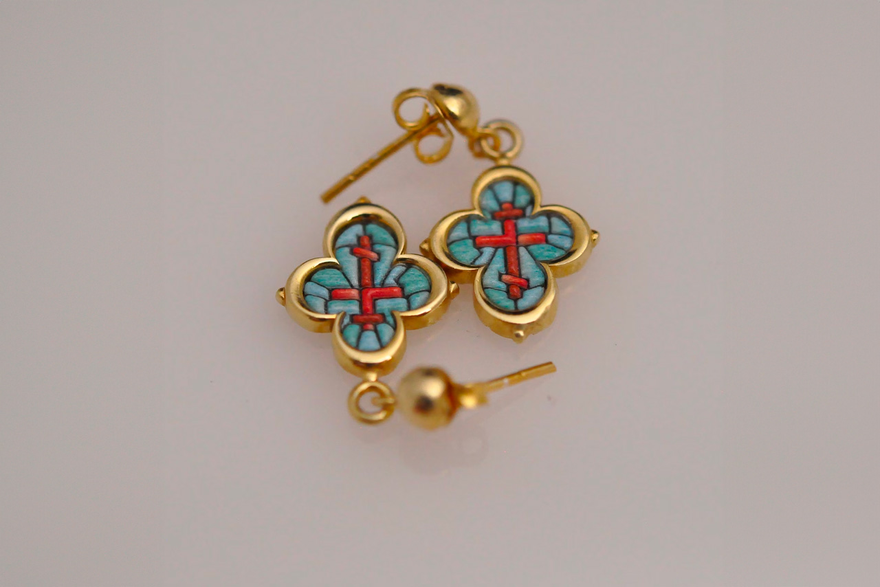 These earrings go beyond being mere accessories; they serve as a personal expression and a reflection of individual beliefs. The red mosaic cross on the blue background is not only a testament to faith but also a nod to artistic beauty. Each time these earrings are worn, they carry with them a narrative of devotion and a celebration of the intricate art of mosaic craftsmanship.
